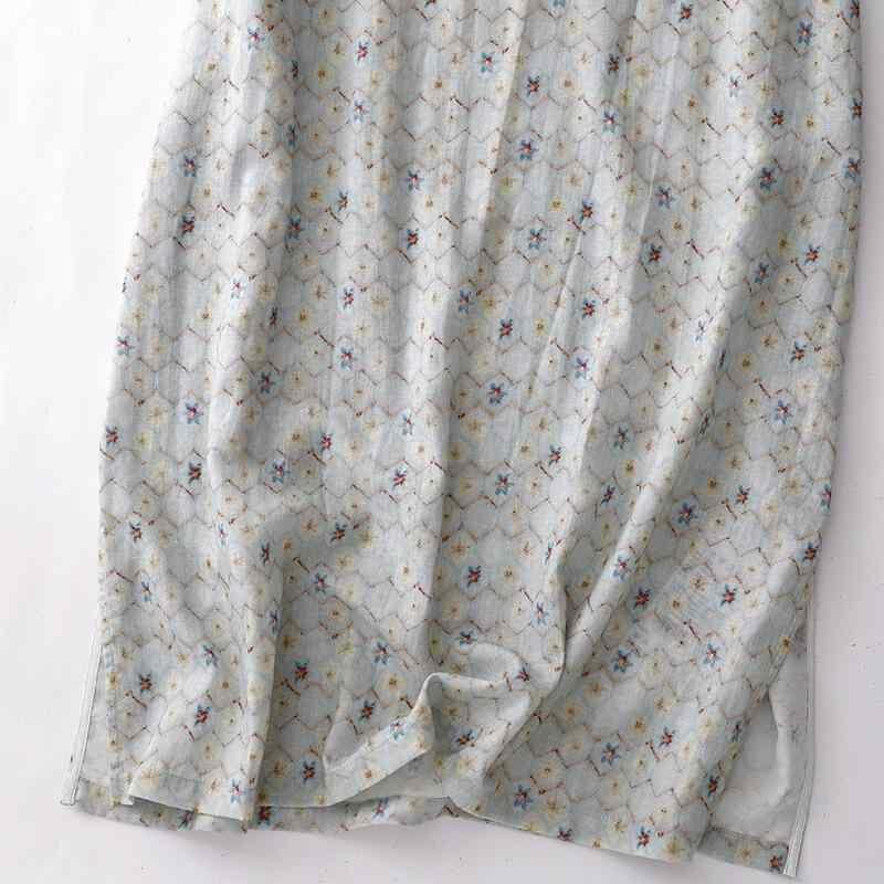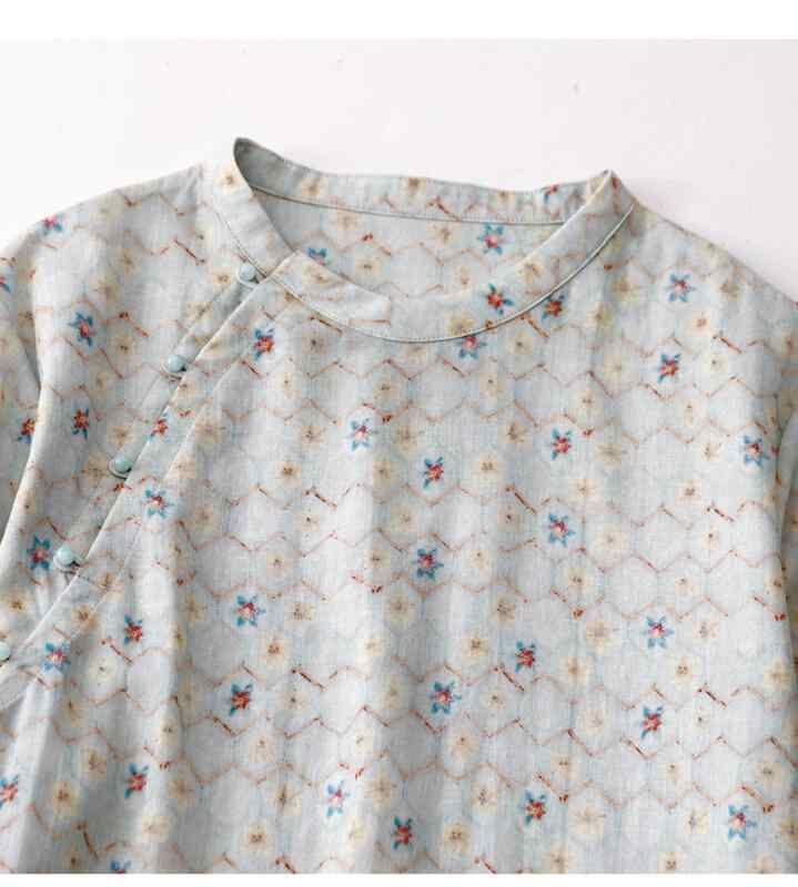 ワンピース レディース ゆったり 大きいサイズ 中華風 改良チャイナドレス エレガント レトロ 花柄 フラワープリント 綿麻 コットンリネン Aライン ミモレ丈 半袖 ラウンドネック ポケット付き プルオーバー カジュアル