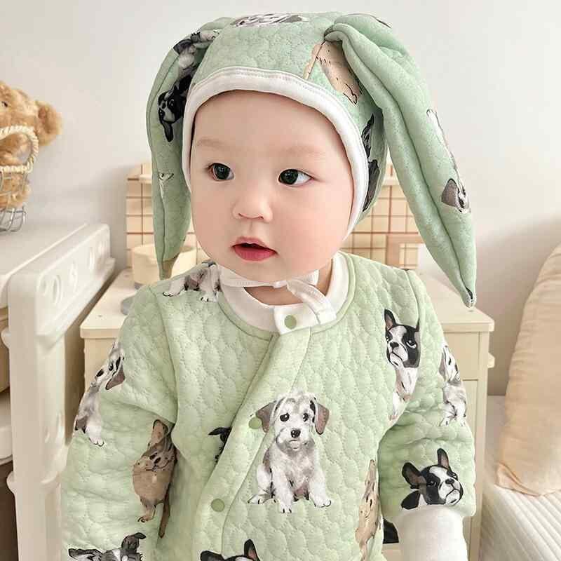 帽子 ベビー ニット帽 うさぎ耳 中綿入り 秋冬 防寒 保温 あったか かわいい キュート 厚手 コットン 防風 乳幼児 子供用 アニマル