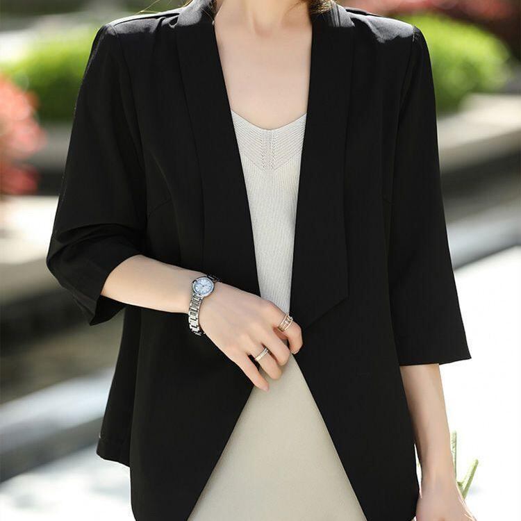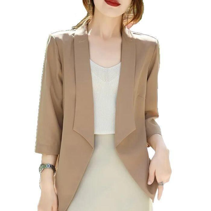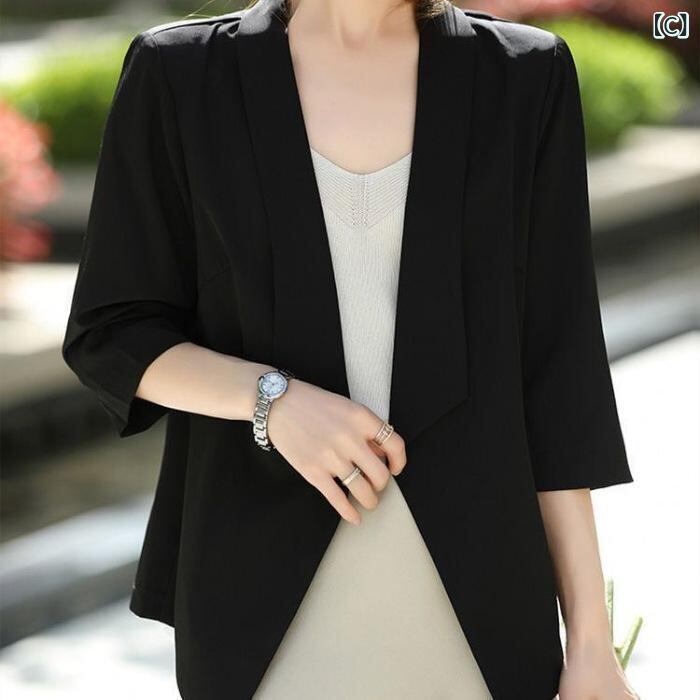 ジャケット レディース 7分袖 サマージャケット 薄手 カーディガン テーラードジャケット 高弾性シルクコットン ポリエステル 無地 ゆったり 着痩せ スタイル 通勤 オフィス