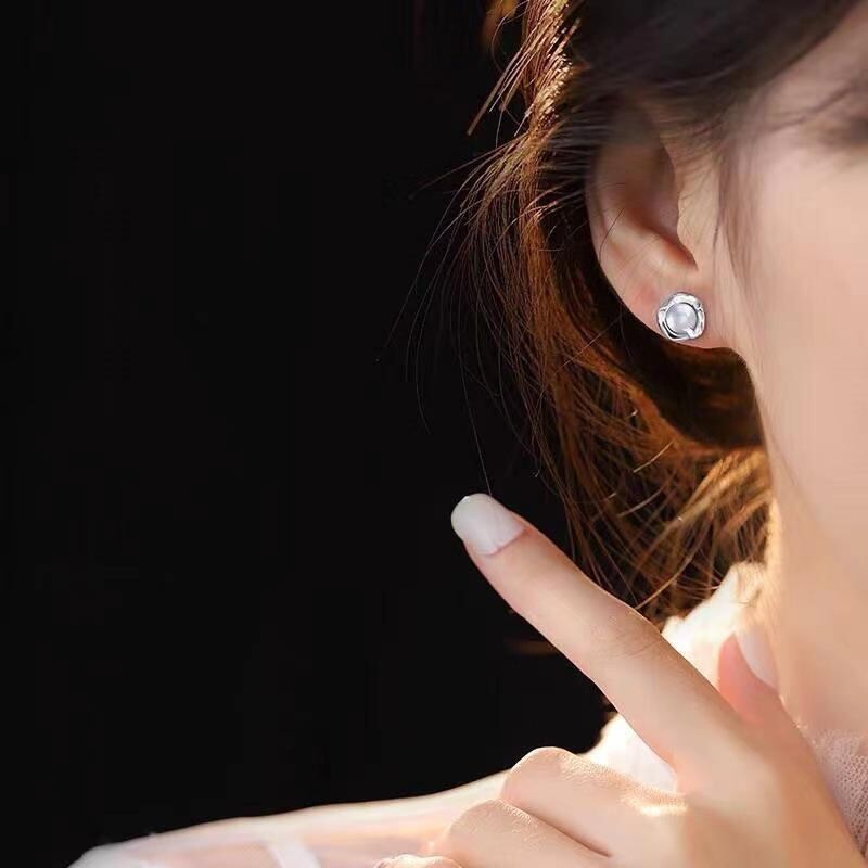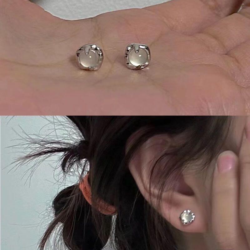 ピアス レディース 小ぶり 華奢 繊細 月の光 ムーンライト 高級感 クール ミニマル 個性的デザイン シンプル エレガント 優雅 遊び心 幾何学 サークル シルバーカラー メタル