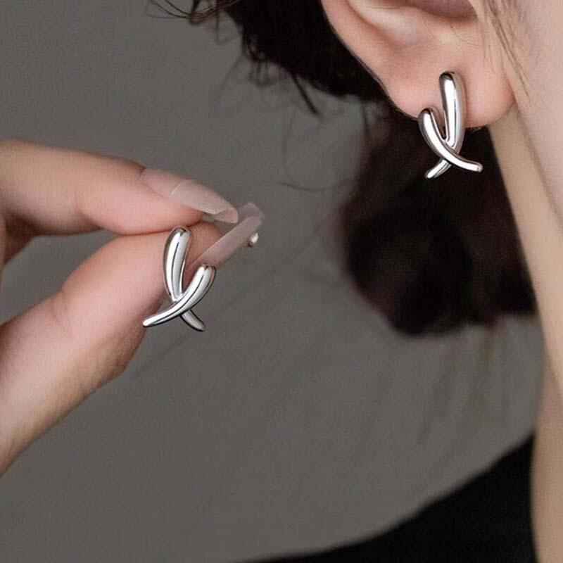 ピアス レディース 韓国風 シンプル クロス アシンメトリー メタル メッキ加工 幾何学 スタッドピアス イヤリング 上品 高級感 個性的 普段使い ゴールド シルバー 耳飾り