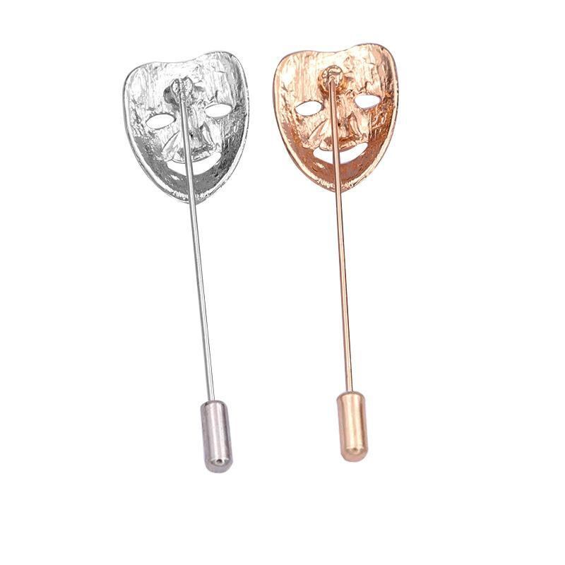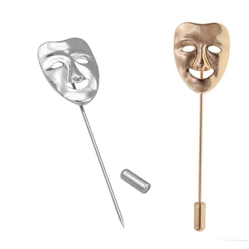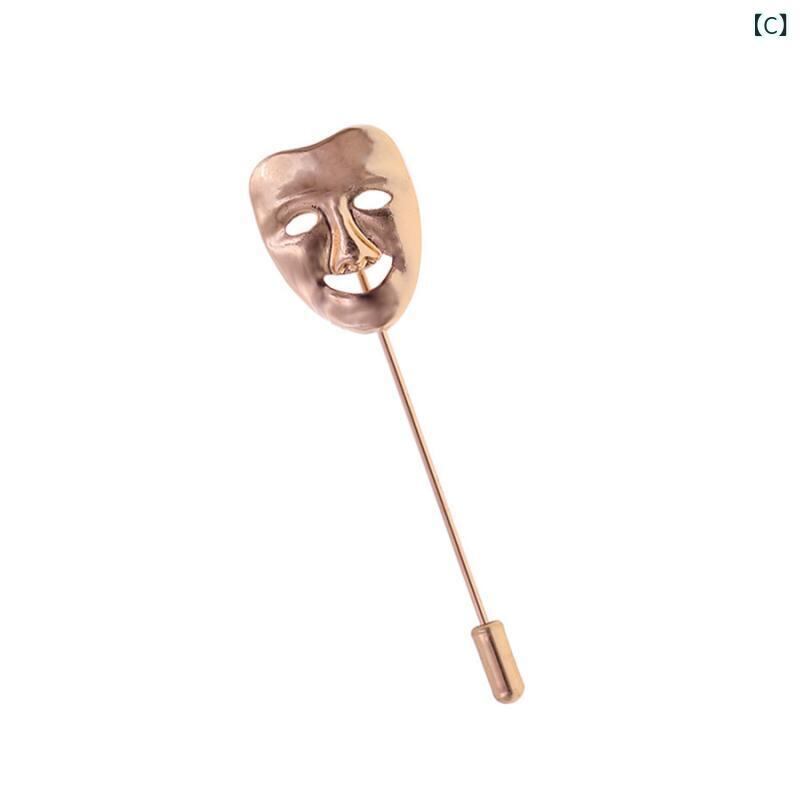 ブローチ メンズ 個性的 欧米スタイル スマイル マスクモチーフ スティック型ロングピン 合金製 ファッション小物 ワンポイント シルバー ゴールド ローズゴールド