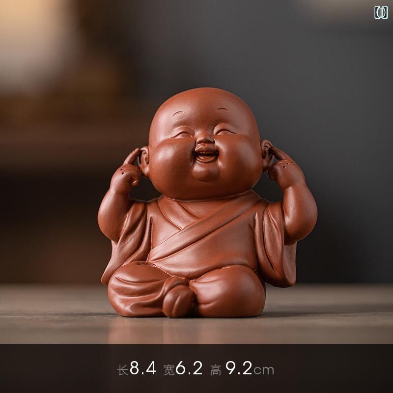 置物 禅風 紫砂陶 小沙弥 小坊主 見ざる聞かざる言わざる動かざる オブジェ 卓上 茶席飾り 和モダン インテリア 飾り物 書斎 リビング