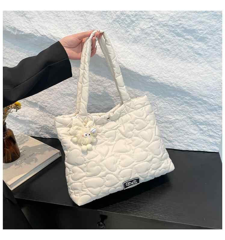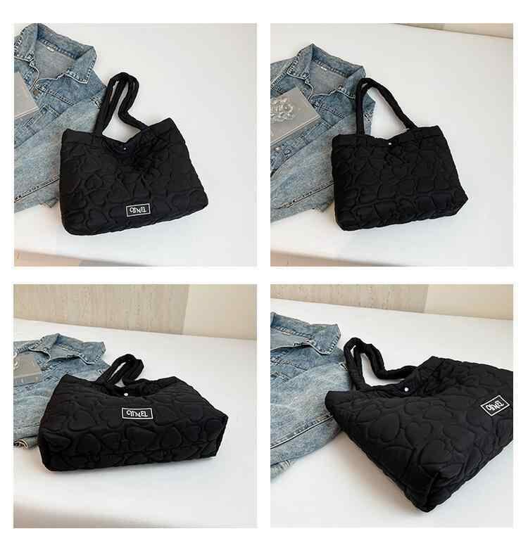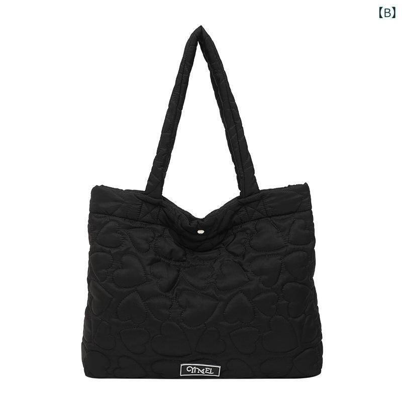 トートバッグ レディース 韓国風 かわいい キルティング ハート柄 ナイロン 軽量 デイリー 普段使い カジュアル ショルダーバッグ 横型 スクエア ピンク ブラック パープル ホワイト