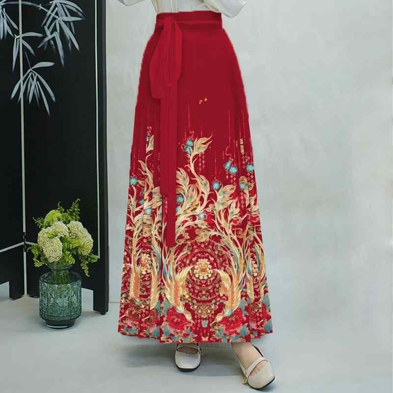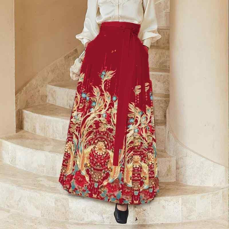 漢服セットアップ レディース 女性用 馬面スカート プリーツスカート ロング丈 ポリエステル 新中華風 大きいサイズ 体型カバー オールシーズン 高級感