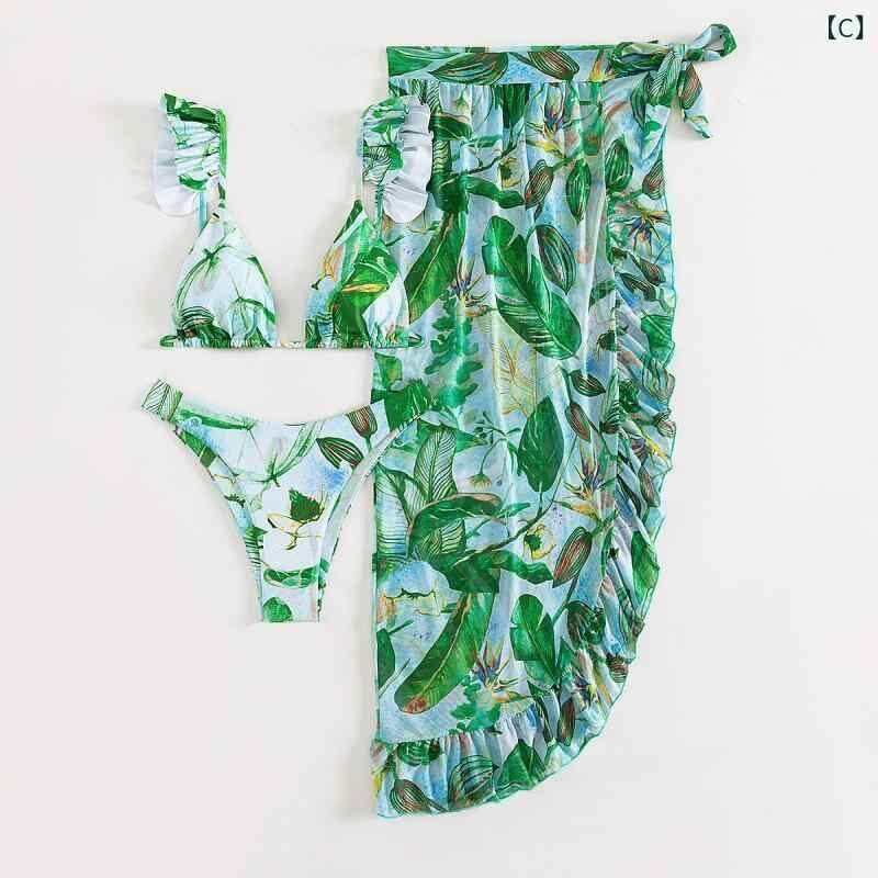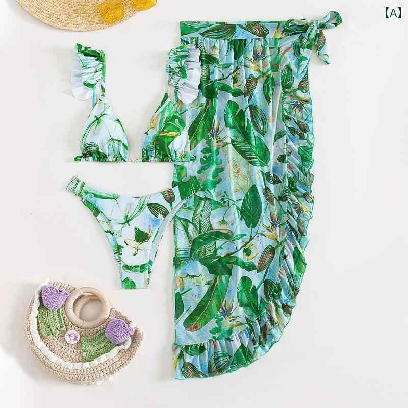 水着 レディース セクシー ビキニ 3点セット スカート付き フリル ハイウエスト バックシャン 体型カバー カップ付き ノンワイヤー 速乾 高弾性 ポリエステル スパンデックス プール ビーチ 海水浴 リゾート