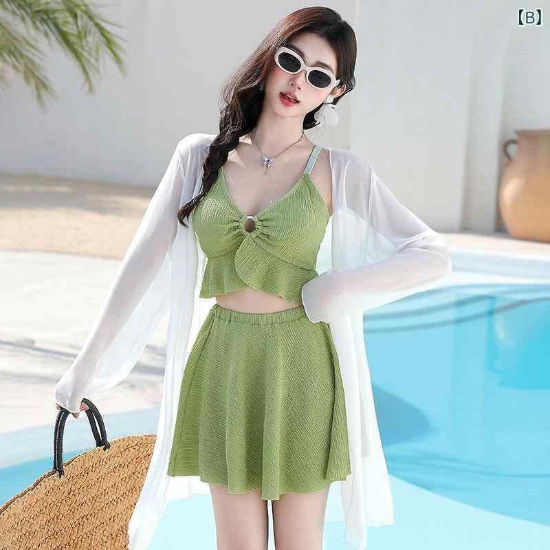 スイムウェア レディース 大きいサイズ 体型カバー 3点セット セパレート エレガント 着痩せ効果 お腹カバー 露出控えめ 大人っぽい 韓国風 おしゃれ SNS映え 温泉 プール リゾート マリンスポーツ 伸縮性素材 カップ付き ノンワイヤー