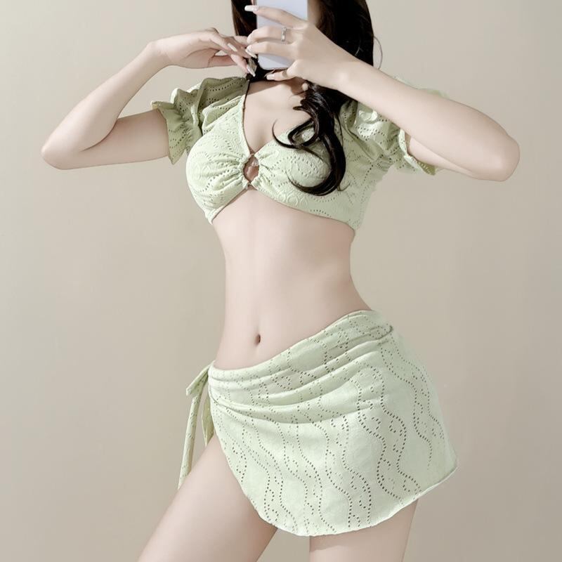 水着 レディース セパレート スリーピース 高級感 温泉 リゾート ビーチ セクシー キャミソール カップ付き ノンワイヤー 無地 ポリエステル 水泳 スポーツ 水陸両用