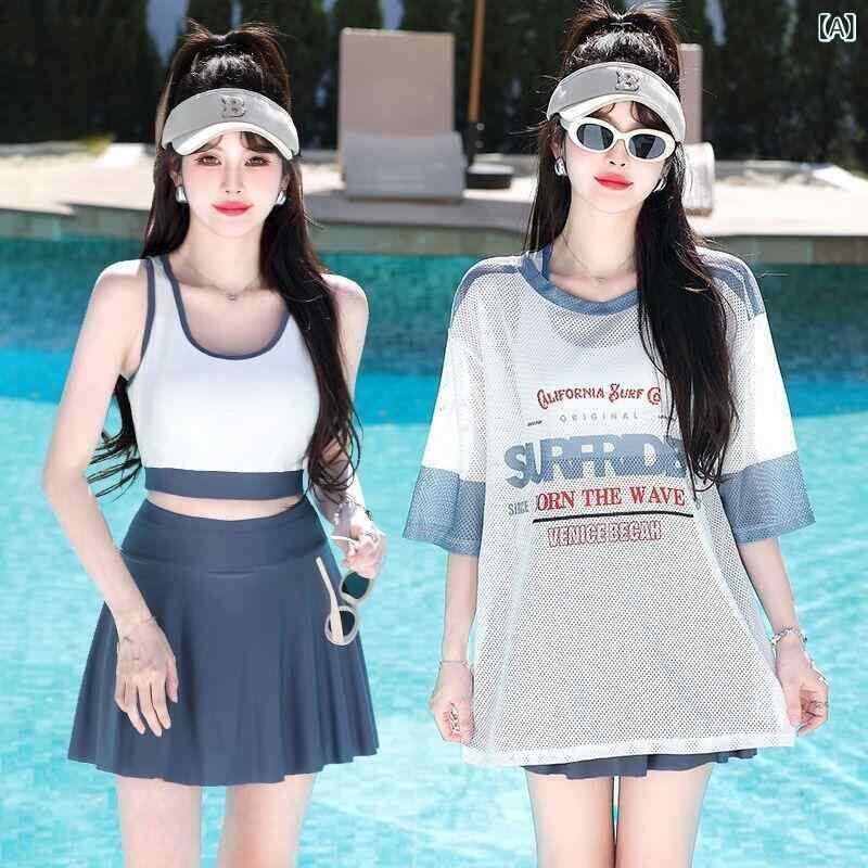 水着 レディース セパレート 体型カバー UVカット 3点セット カバーアップ 半袖 パッド入り ノンワイヤー 高級感 速乾 ポリエステル リゾート ビーチ スイムウェア スポーツ 三角ショーツ