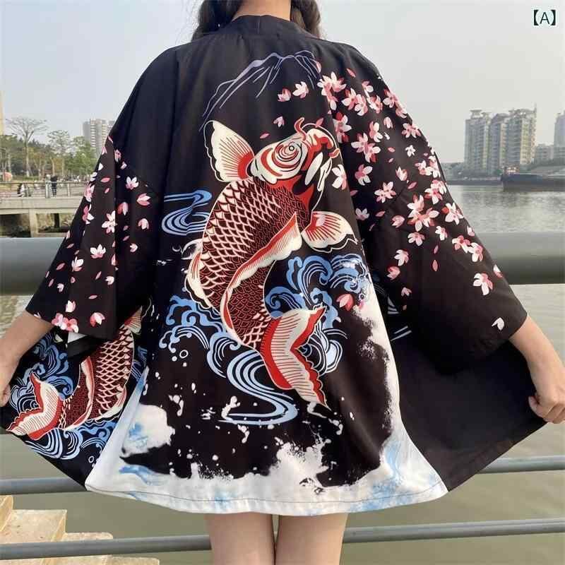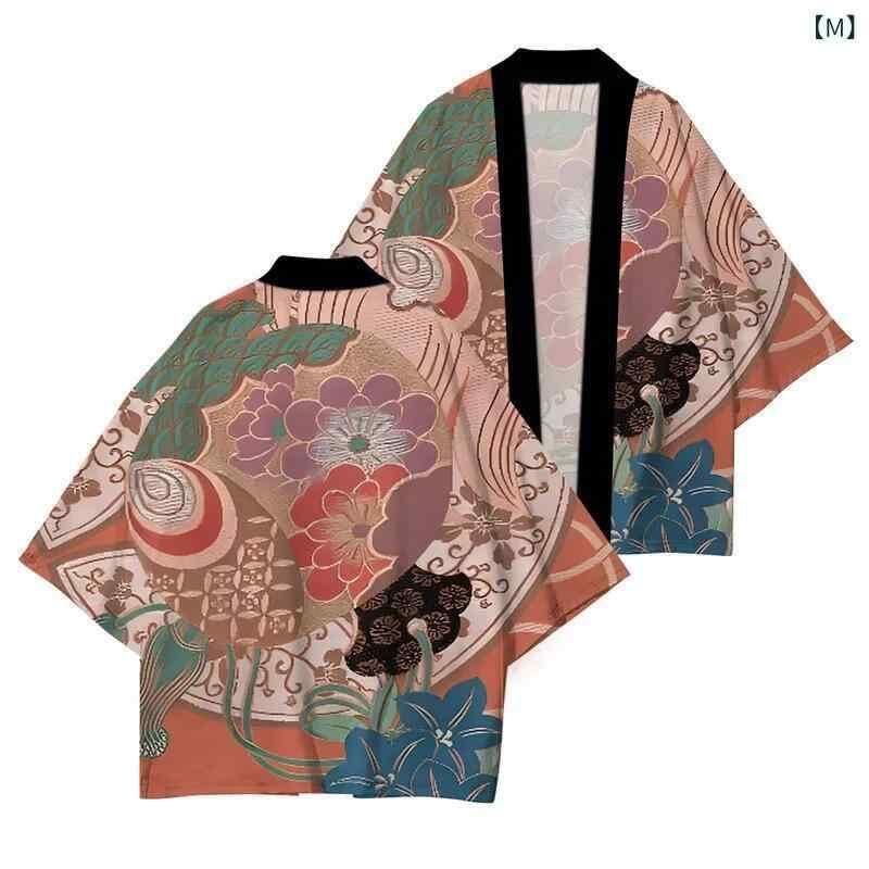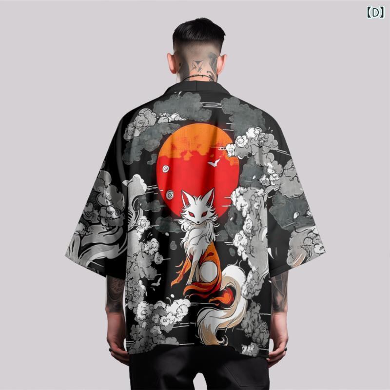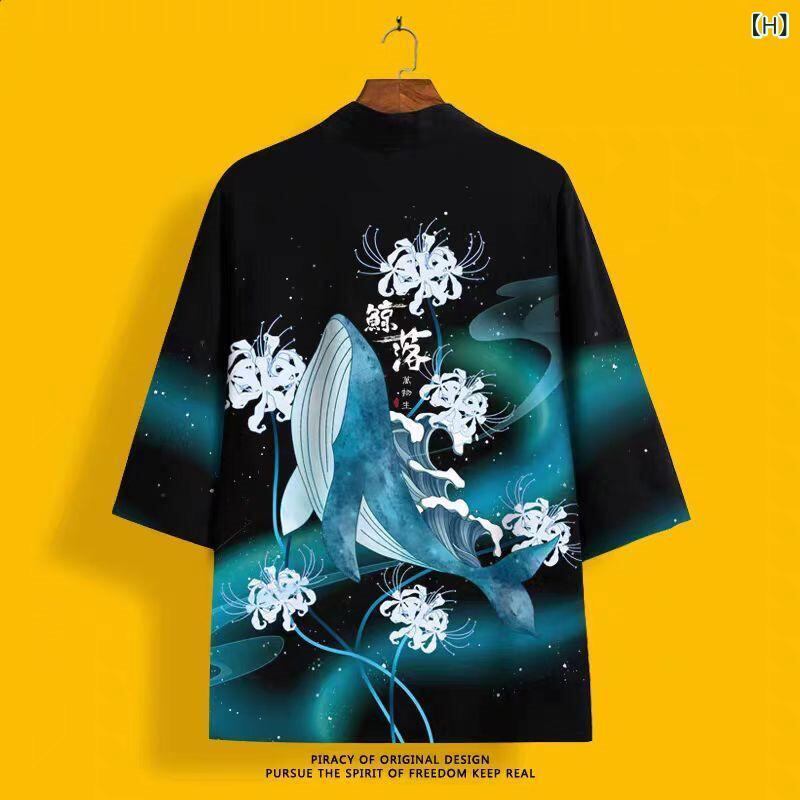 羽織 メンズ 七分袖 ゆったり ビッグシルエット 錦鯉 開運 3Dデジタルプリント柄 和風 浴衣風 開襟シャツ カーディガン 夏物 ポリエステル素材 カジュアル ストリートファッション トップス アウター 部屋着 普段着