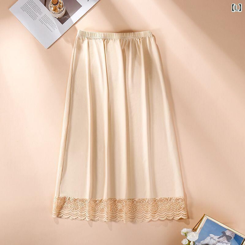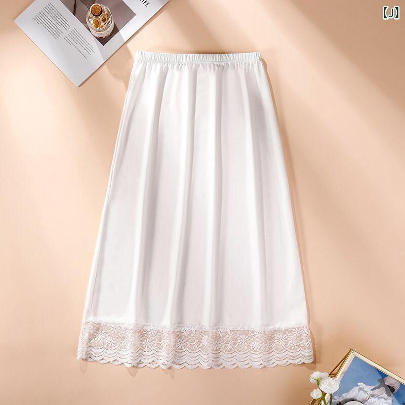 ペチコート レディース モダール レース切り替え 透け防止 インナー ショート丈 ミドル丈 大きいサイズ Aライン 無地 高伸縮性 再生繊維