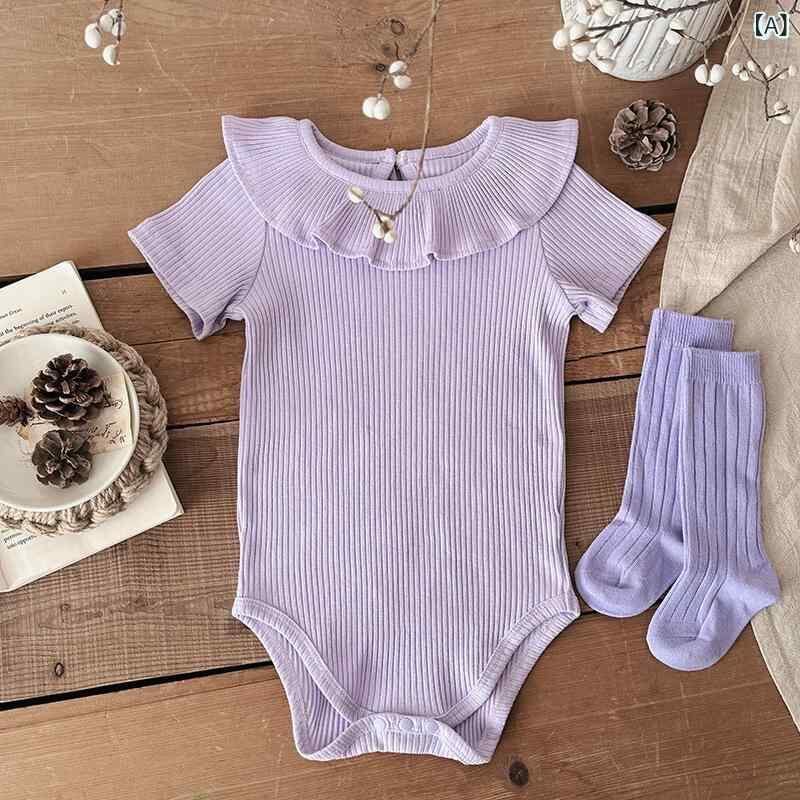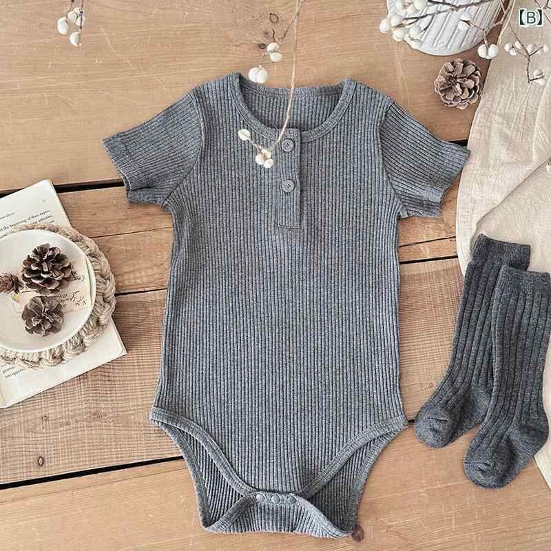 ロンパース ベビー 半袖 無地 綿 リブ ボディスーツ 肌着 夏 薄手 新生児 乳幼児 男女兼用 吸湿性 通気性 肌触り 柔らかい コットン素材 カジュアル