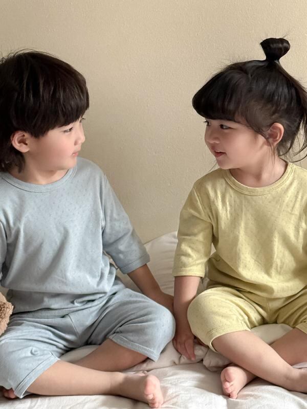 パジャマ 子供 男の子 女の子 ベビー 赤ちゃん 幼児 薄手 純綿 コットン 柔らかな肌触り 七分袖 上下セット 夏用 冷房対策 ルームウェア 部屋着 寝巻き 普段使い