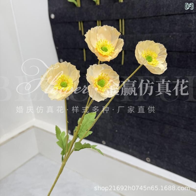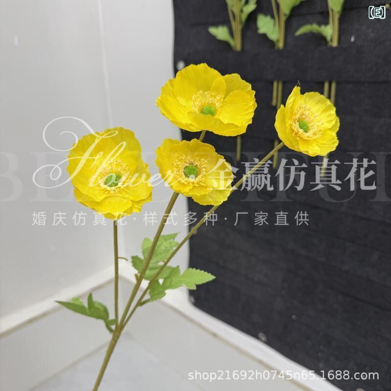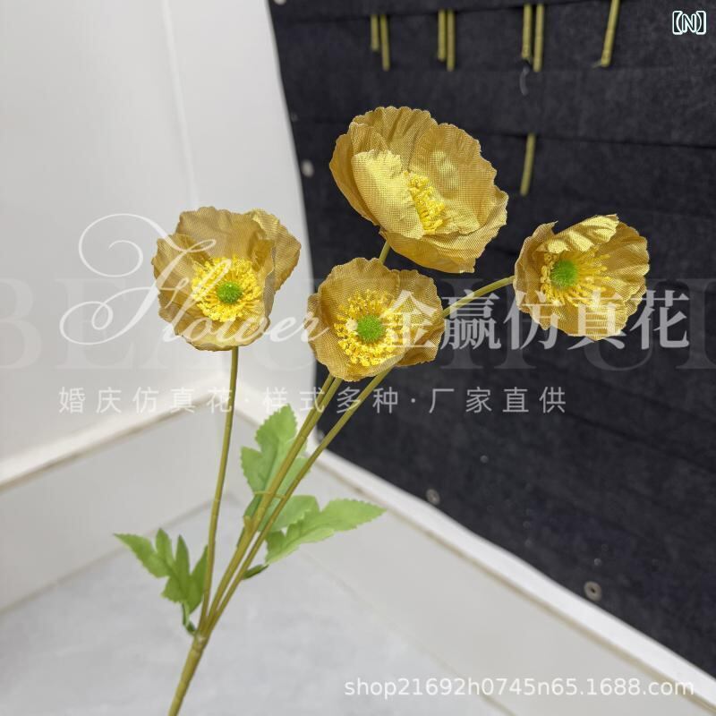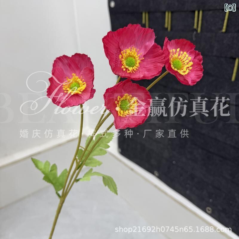 造花 虞美人 ポピー ヒナゲシ 4輪 リアル フェイクフラワー アートフラワー 高級感 絹花 布製 ポリエステル製 フロッキー加工 ウェディング ブライダル 結婚式 撮影小道具 インテリア ディスプレイ 飾り ホームデコレーション 豊富なカラー