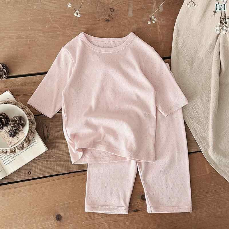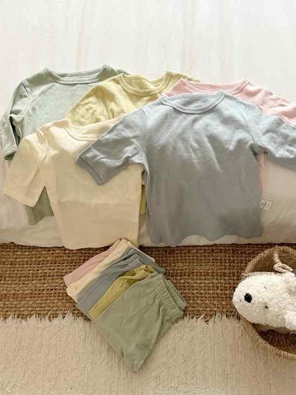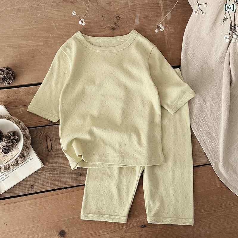 パジャマ キッズ ベビー 子供 男女兼用 男の子 女の子 綿100% コットン 七分袖 セットアップ 上下セット 薄手 涼しい 柔らかい肌触り ルームウェア 部屋着 寝間着 ナイトウェア 普段使い お泊り 夏用 黄色 緑 青 ピンク ベージュ