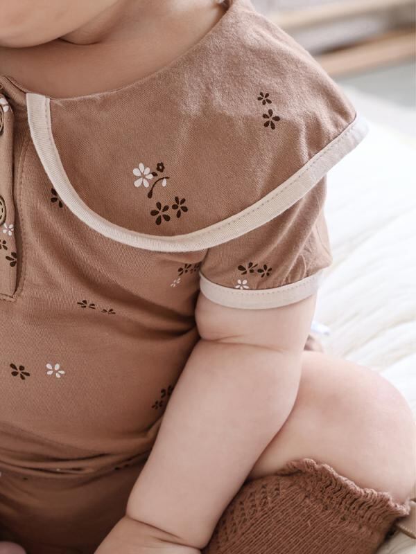 ロンパース ベビー 男女兼用 夏物 薄手 モダール 半袖 カバーオール ボディスーツ 吸湿速乾 伸縮性 柔らかい 通気性 軽量 快適 韓国風 カジュアル 普段使い 部屋着 ブラウン ベージュ