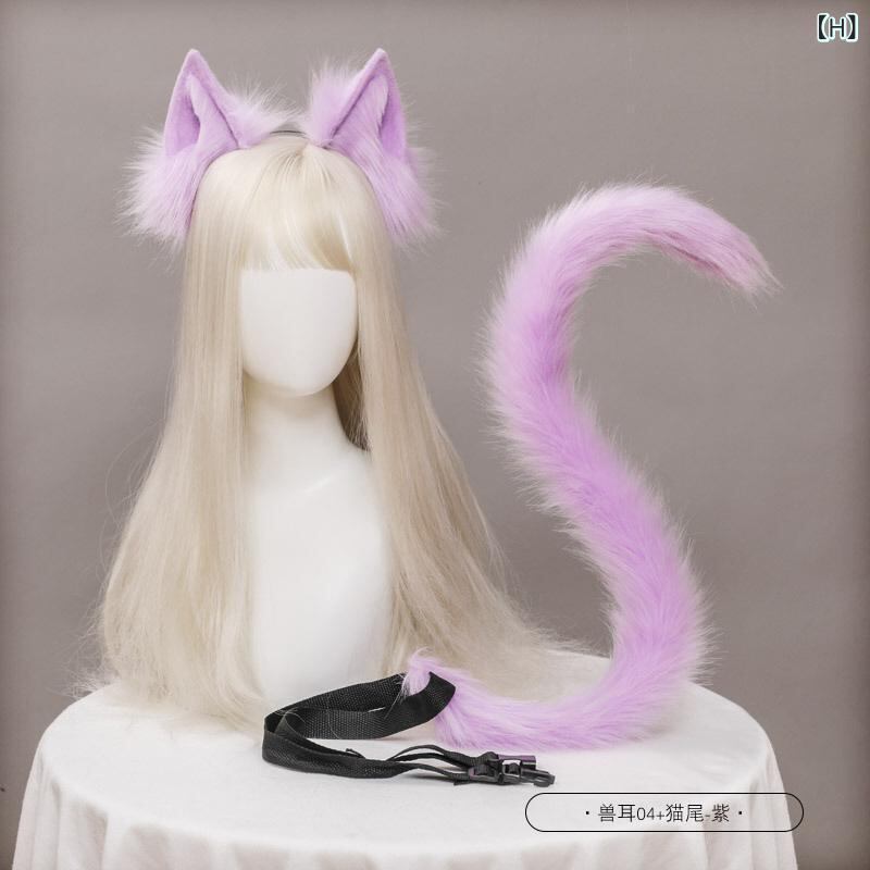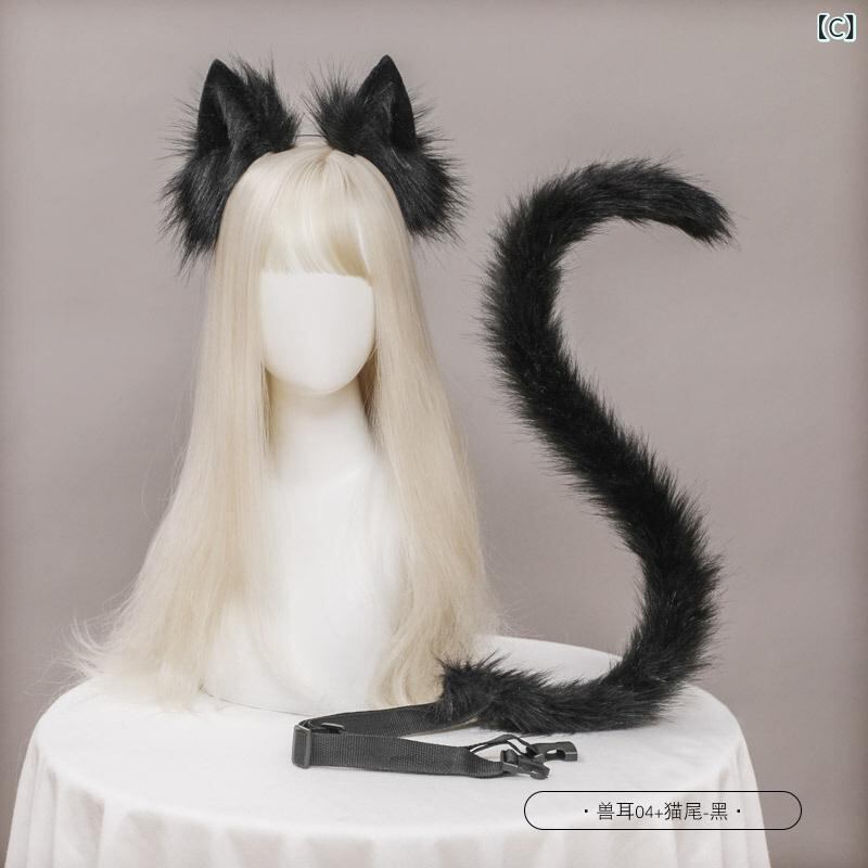コスプレアクセサリー かわいい 猫耳 カチューシャ 尻尾 セット リアル けもの耳 フェイクファー ハンドメイド ふわふわ素材 パーティー イベント 仮装 ハロウィン 推し活