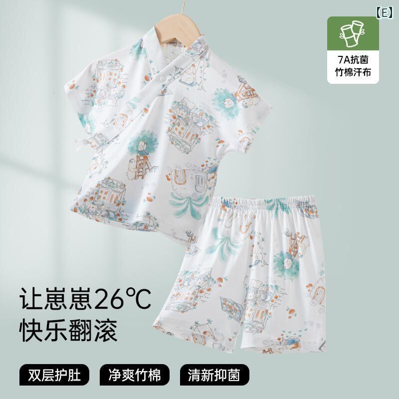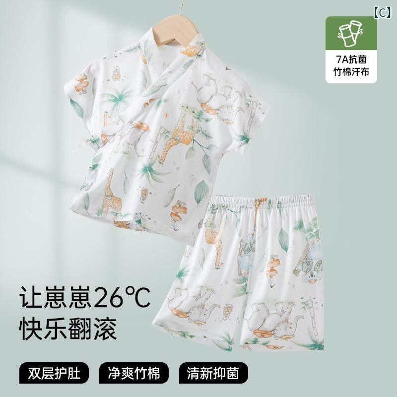 ベビー服 男の子 半袖 半ズボン 上下セット セパレート 夏 薄手 甚平風 通気性抜群 竹繊維 再生繊維 吸湿速乾 接触冷感 ルームウェア 普段使い