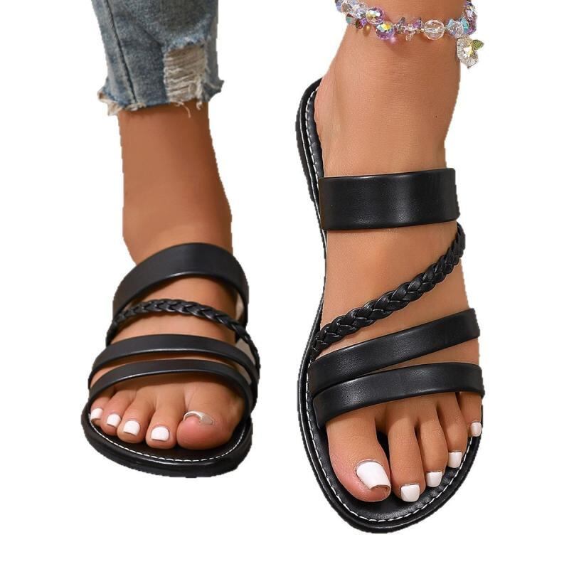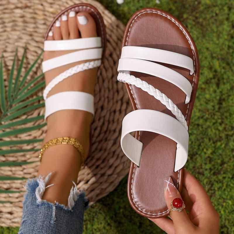 サンダル レディース 大きいサイズ フラットソール ワンバンド 軽量 編み込み 無地 おしゃれ 外履き ビーチ リゾート カジュアルスタイル 合成皮革 PVCソール