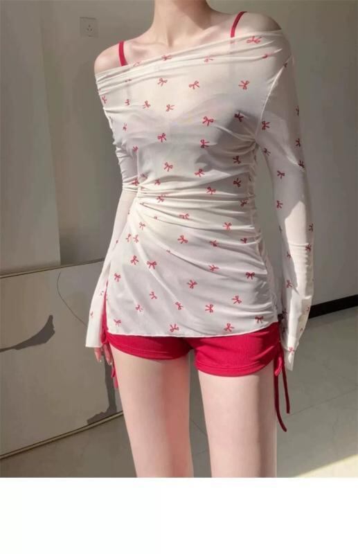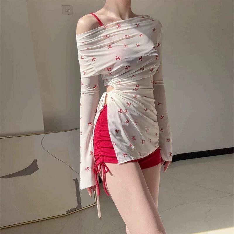水着 レディース セパレート 3点セット 韓国風 おしゃれ 小胸カバー バストアップ パッド付き 温泉 リゾート レジャー UVカット 日焼け対策 ブラック レッド ポリエステル メッシュ 長袖