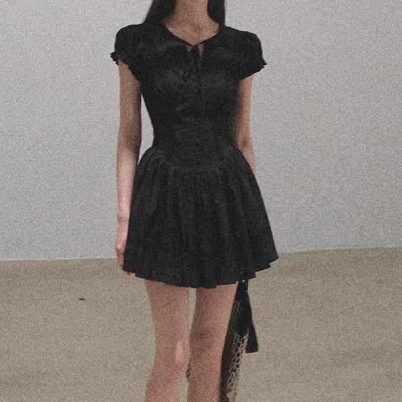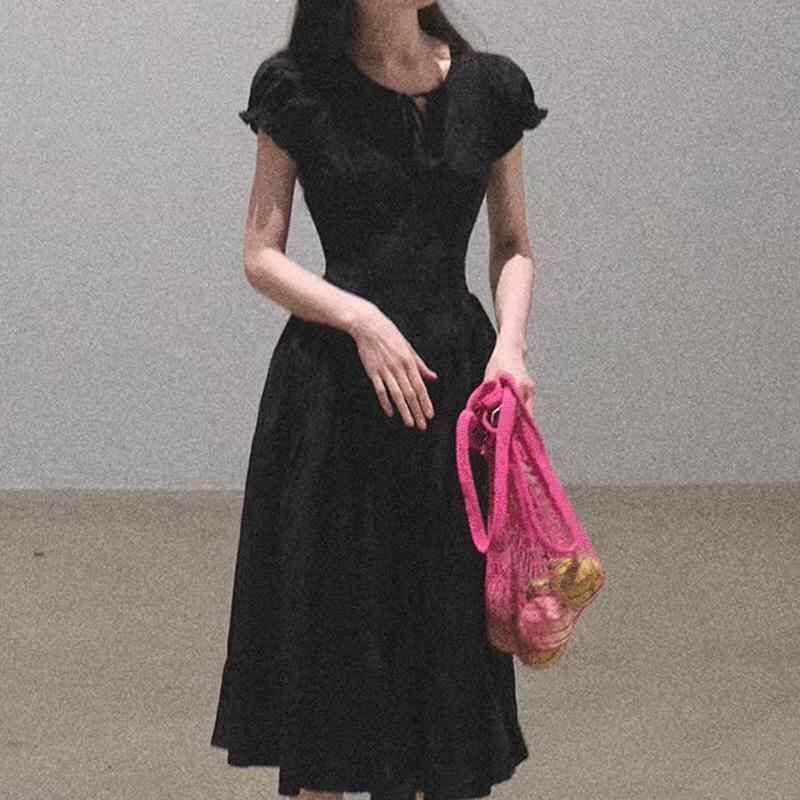 ワンピース レディース 綿 コットン フレンチスタイル スタイルアップ ウエストシェイプ 刺繍 Aライン ハイウエスト 半袖 ラウンドネック ミニ丈 ロング丈 リゾート カジュアル 着回し ブラック ホワイト