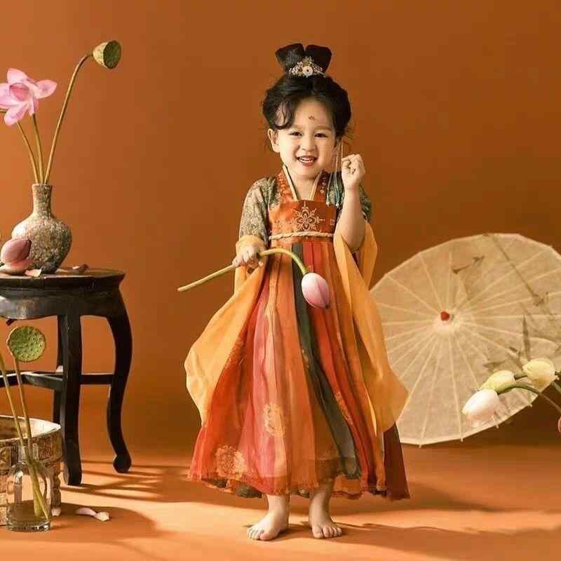 唐装 女の子 子供服 プリンセスドレス 漢服 中国風 古風衣装 民族衣装 刺繍入り 薄手 柔らかな肌触り 発表会 イベント お祭り 写真撮影 夏用 レッド グリーン イエロー