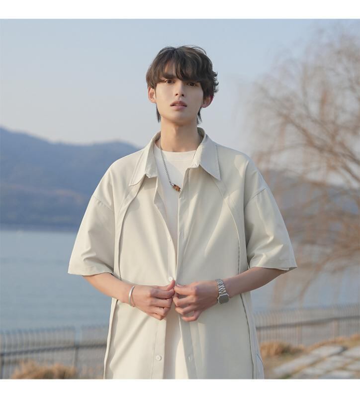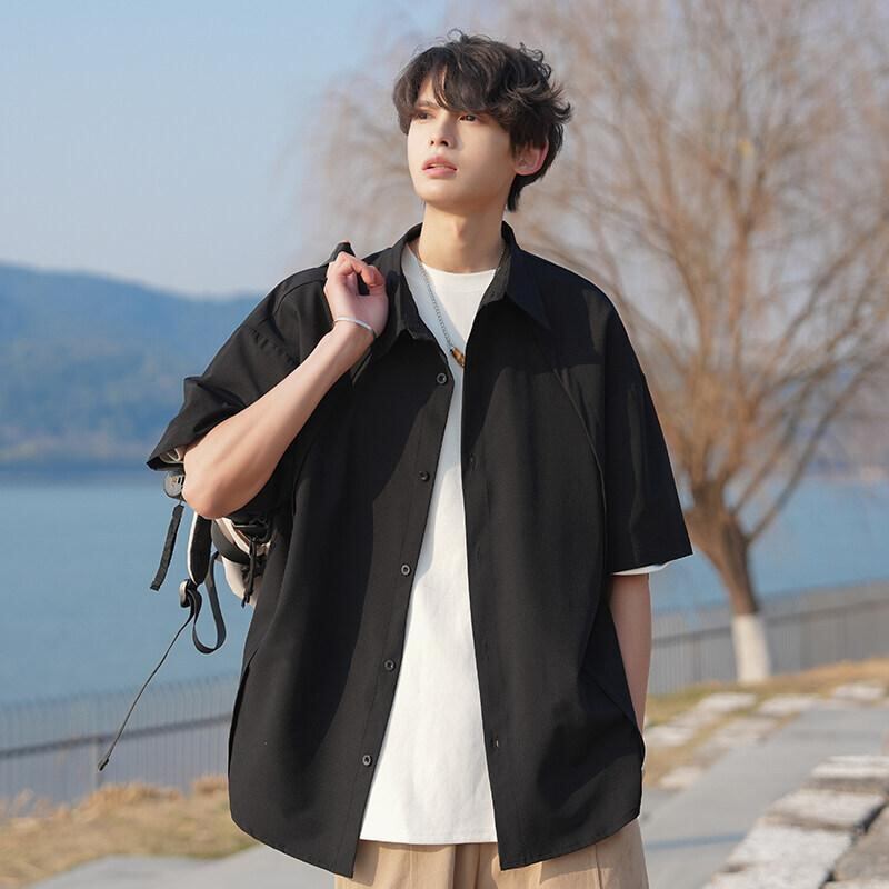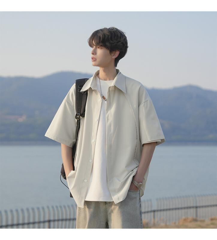 シャツ メンズ 男性用 半袖 無地 接触冷感 高級感 ゆったり ルーズフィット ビッグシルエット ポリエステル 薄手 軽量 シワになりにくい カジュアル デイリーユース サマー トップス 襟付き