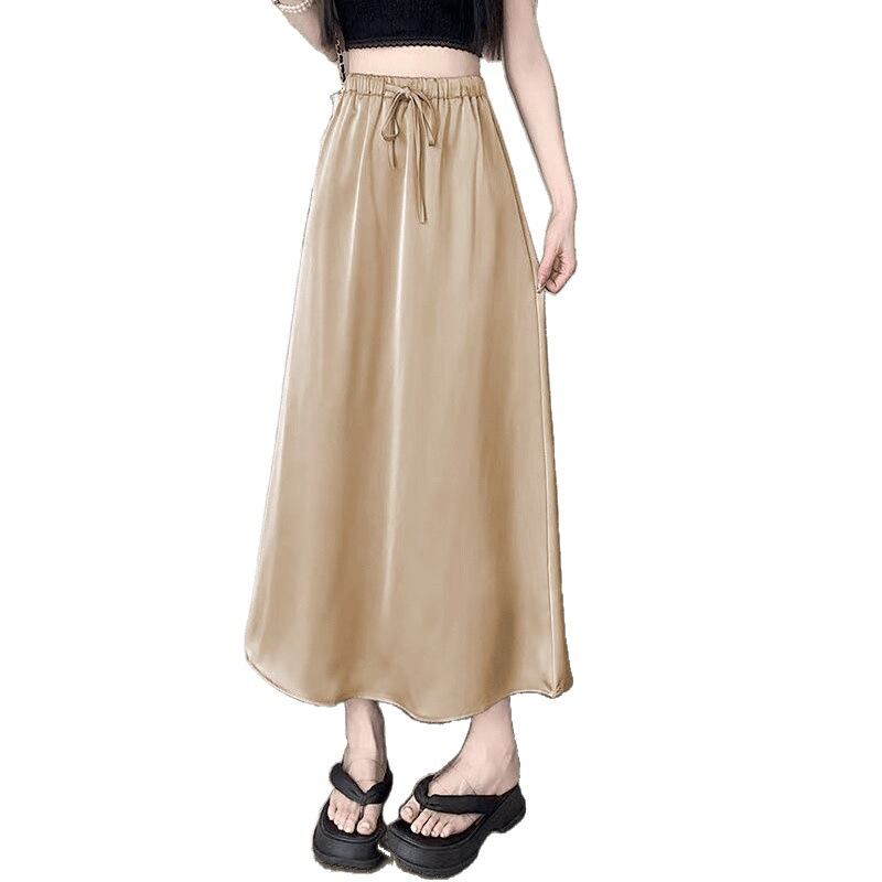 ロングスカート ハイウエスト フレア Aライン アセテート 接触冷感 レーヨン サテン ドレープ 着痩せ 上品 エレガント きれいめ 通勤 オフィス
