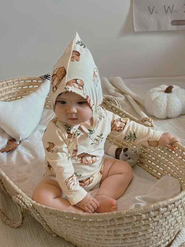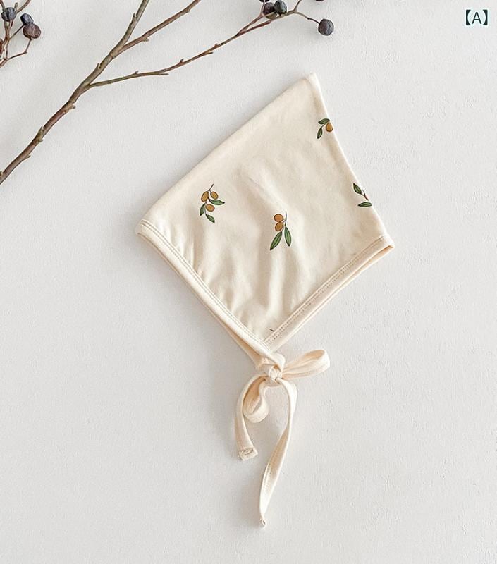 帽子 ベビー 新生児 乳幼児 赤ちゃん用 秋冬 防寒対策 あご紐付き 耳当て付き コットン 通気性 北欧風 かわいい 動物 花 フルーツ柄 総柄 プリント