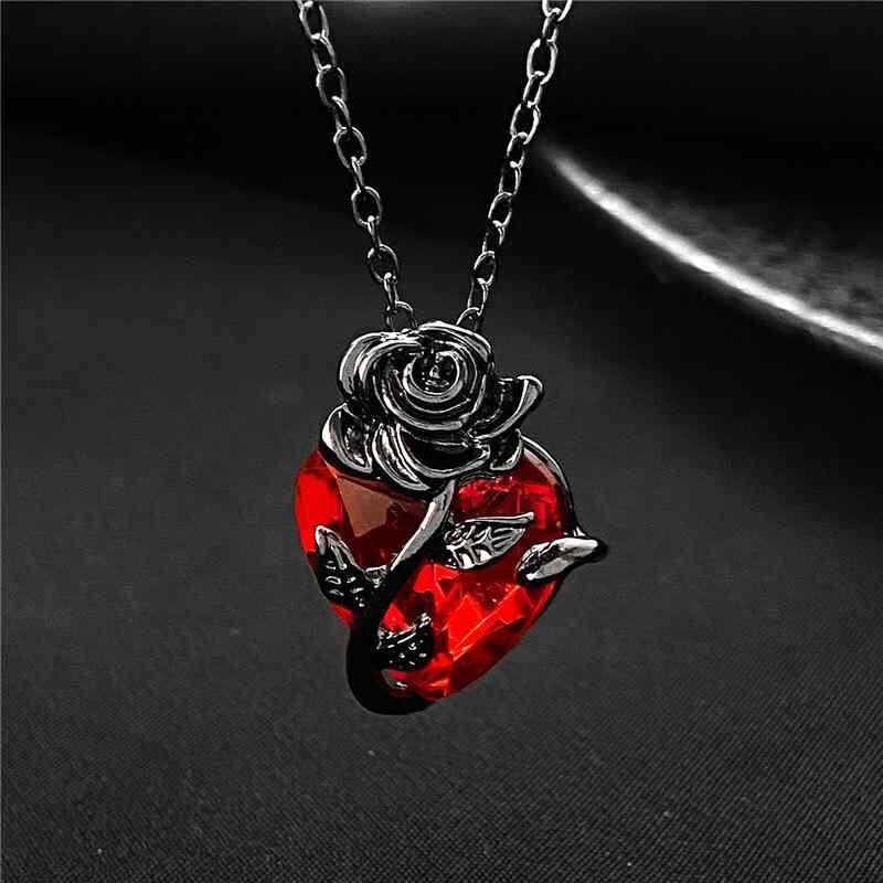 ネックレス レディース 欧米風 ハートローズ ゴシックダークデザイン 巻きつきフラワー ハートモチーフ チョーカー ショートネックレス ブラック メタル ラインストーン 合金製 ファッション モード系 デイリー