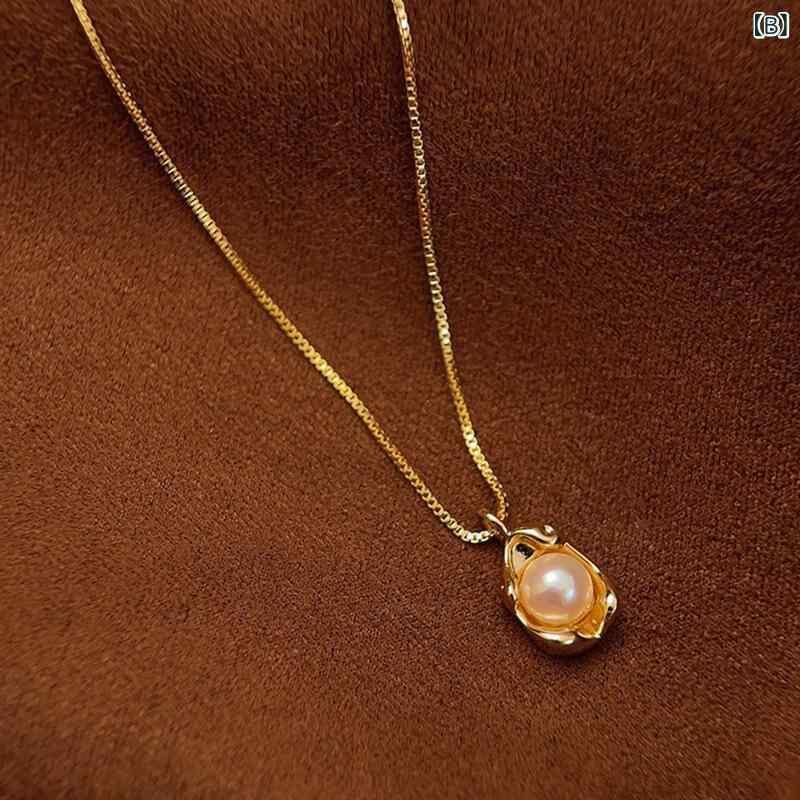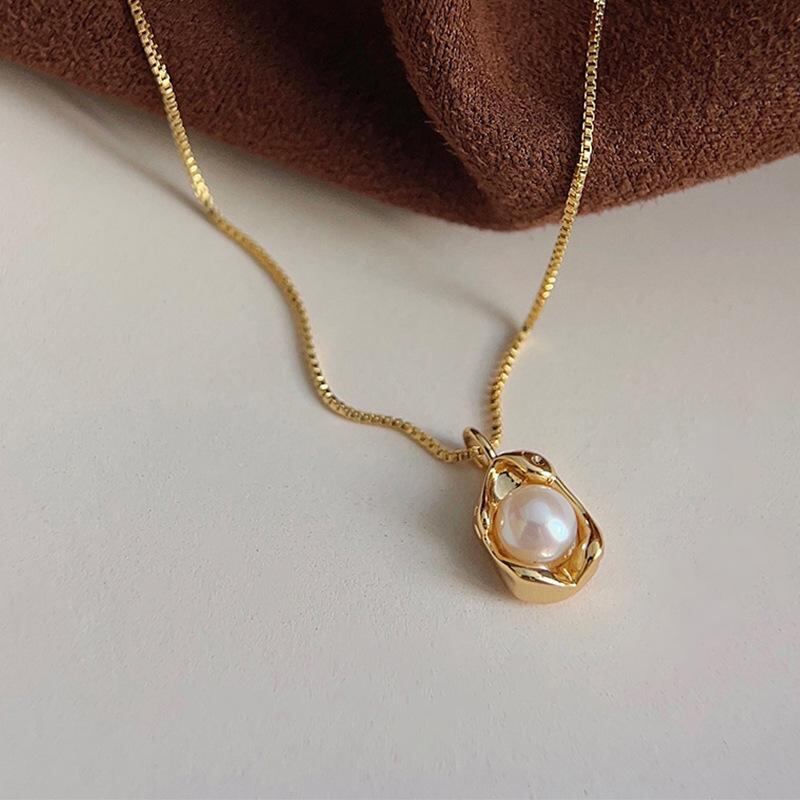ネックレス レディース フェミニン かわいい 豆莢モチーフ 幾何学デザイン ラウンド ペンダント 鎖骨チェーン パール 真珠 メタル合金製 シンプル エレガント 上品 個性的 トレンド 万能 オフィス カジュアル 通勤 普段使い ネックアクセサリー