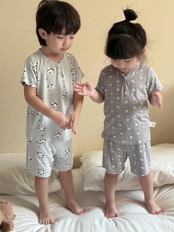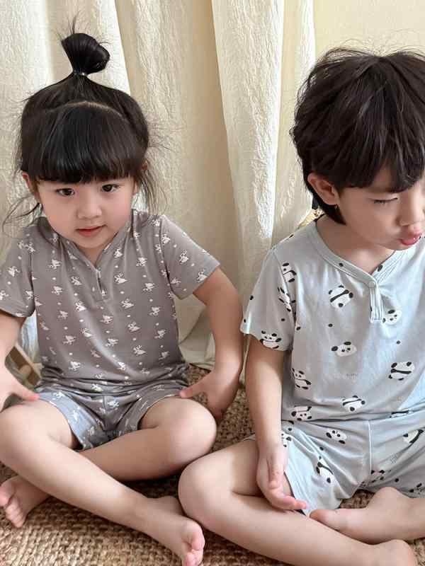 パジャマ キッズ 男女兼用 男の子 女の子 夏用 モダール素材 薄手 上下セット ルームウェア 部屋着 涼しい アニマル柄 かわいい 韓国風