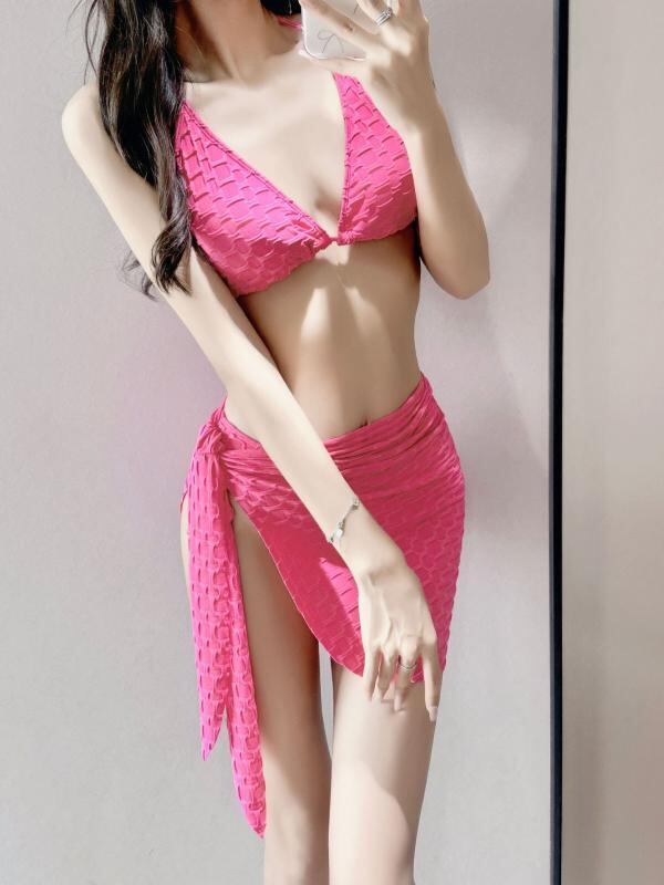 水着 レディース 高級感 ビキニ セパレート 3点セット 着痩せ スタイルアップ パッド入り ノンワイヤー 背中見せ 温泉 リゾート プール 海水浴 ポリエステル ポリウレタン グリーン ローズレッド