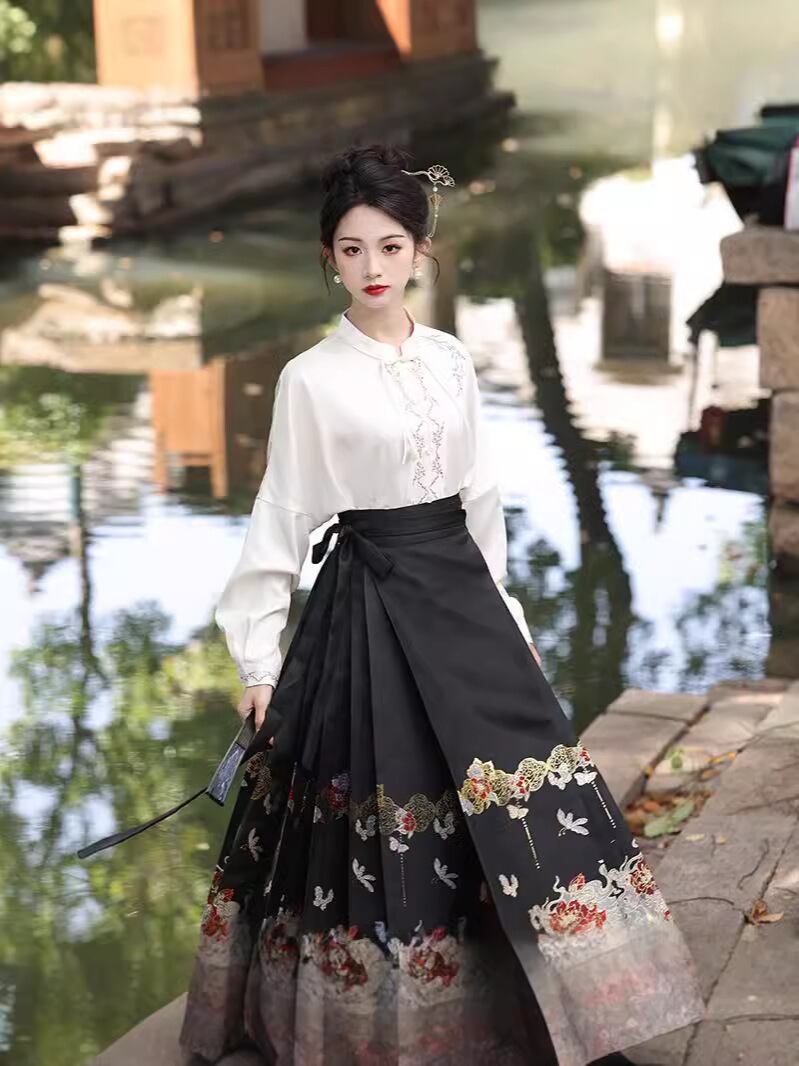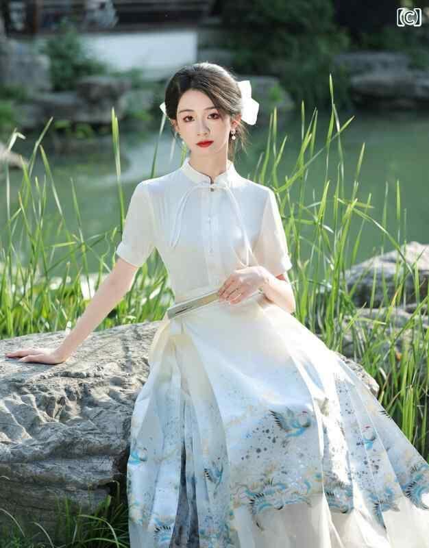 漢服 レディース 金糸織り 馬面スカート セットアップ 精緻な明代風 中国伝統衣装 高級感 フォーマル パーティー 結婚式 婚約衣装 赤色 ポリエステル素材 オールシーズン