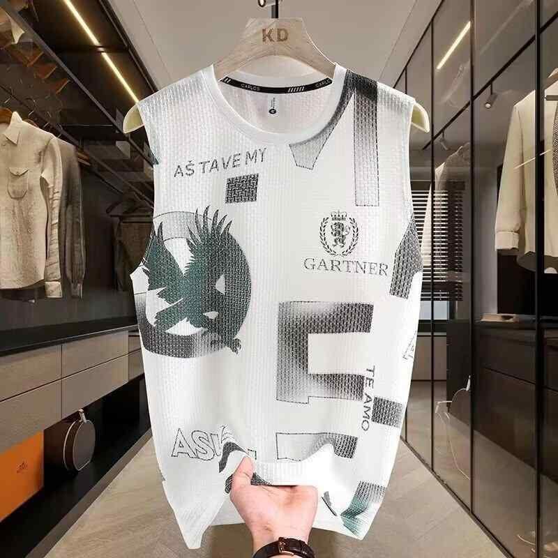 タンクトップ メンズ 薄手 接触冷感 速乾 吸汗 スポーツ トレーニングウェア カジュアル 普段使い プリント ゆったり クルーネック 夏用 ポリエステル メッシュ 通気性抜群