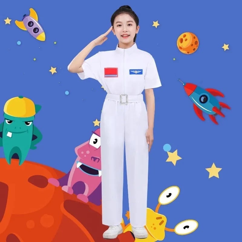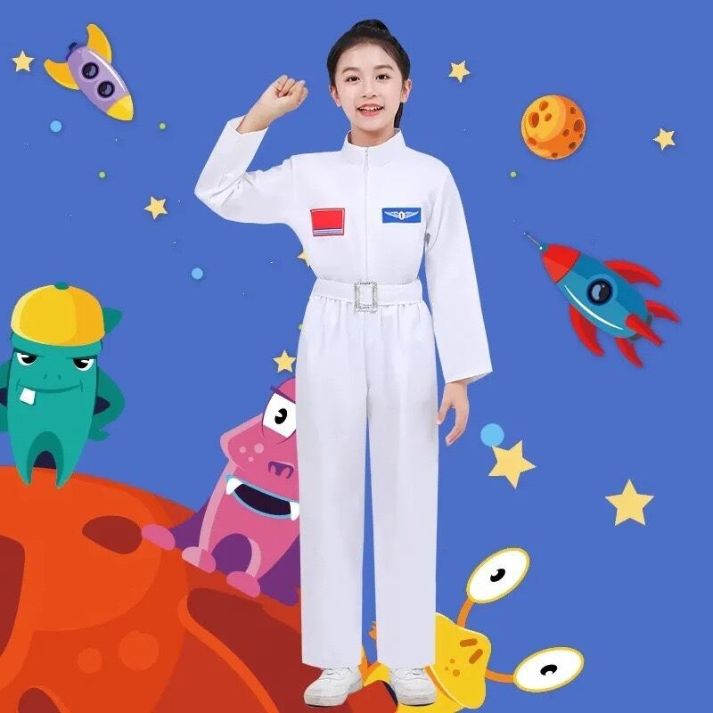 宇宙飛行士 コスチューム キッズ 男女兼用 ロボット AI スペーススーツ 発表会 イベント 舞台衣装 なりきり 変身 ハロウィン 学園祭 ポリエステル