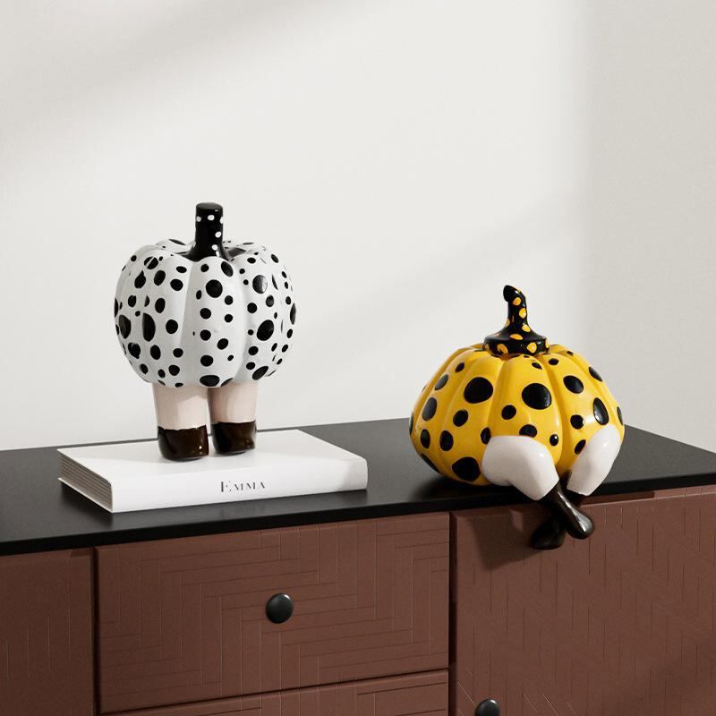 置物 モダン おしゃれ ドット柄 パンプキン 樹脂製 工芸品 リビング キャビネット 卓上 玄関 寝室 飾り オブジェ 高級感 イエロー ホワイト インテリア雑貨