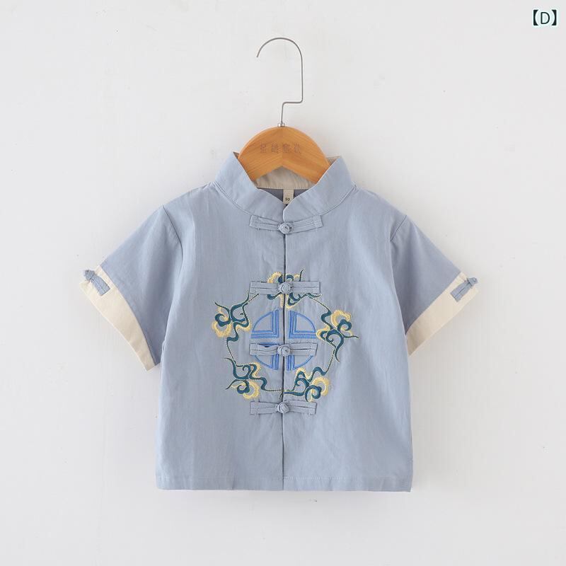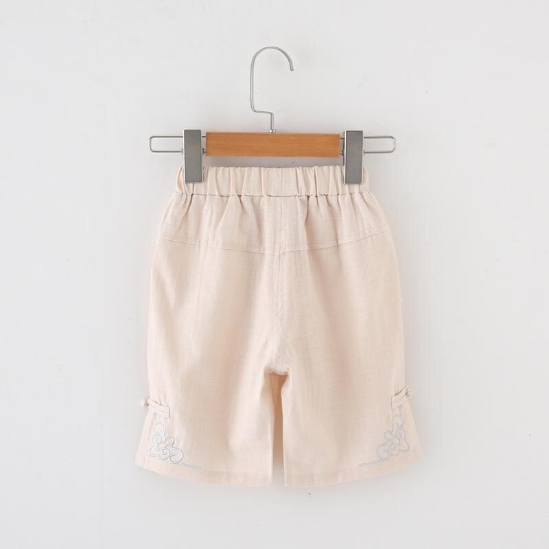 唐装 男の子 キッズ 半袖 綿麻 上下セット 中国風 レトロ 伝統衣装 幼稚園 園児服 普段着 夏物 トップス ハーフパンツ コットンリネン ソフトな肌触り