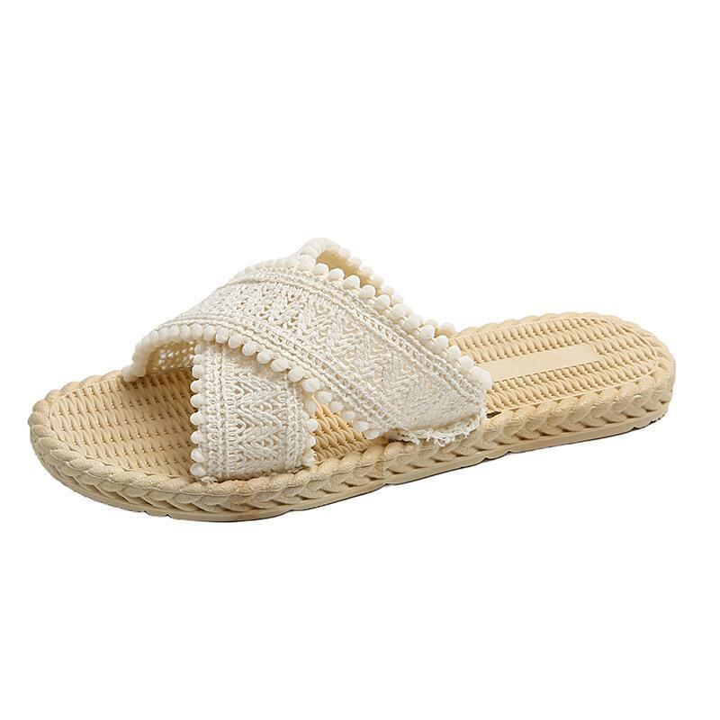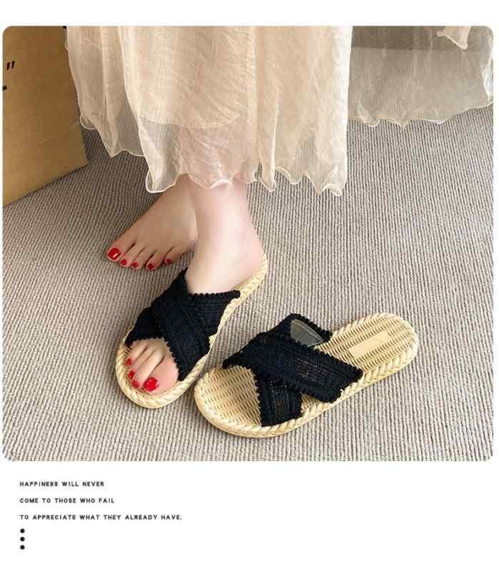 サンダル レディース 編み込み フラットソール 夏 リゾート 旅行 フレンチスタイル エレガント ローマ風 普段使い 軽量 合成皮革 アイボリー ブラック