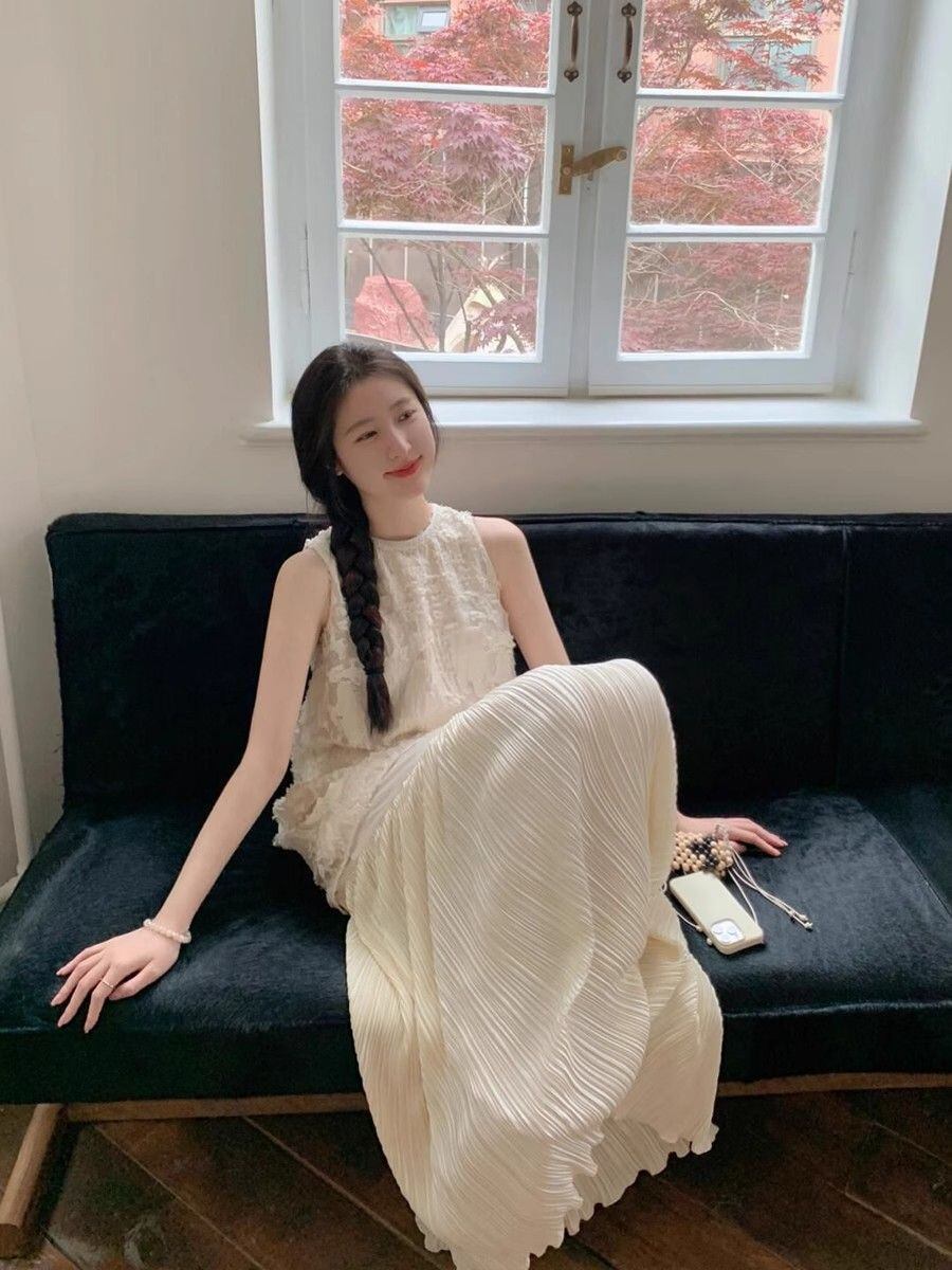 ワンピース レディース レース 刺繍 ノースリーブ ロング丈 切り替え フェイクツーピース キャミワンピース リゾート エレガント 上品 大人カジュアル 旅行 普段使い バカンス ポリエステル アプリコット ベージュ系