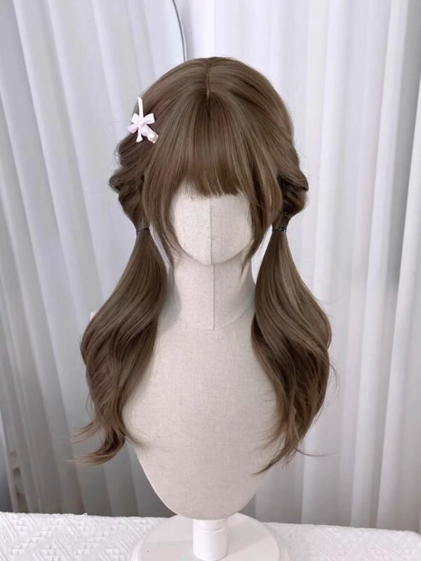 ウィッグ レディース 女性用 ふんわり ロングカール 巻き髪 ロリータ風 アニメ風 二次元スタイル 前髪ぱっつん サイドバング フルウィッグ 耐熱ファイバー