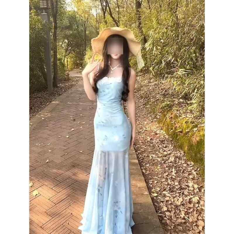 ワンピース レディース フレンチガーリー エレガント 大人可愛い 透け感 チュール シアー素材 レース切り替え キャミソール ハイウエスト マーメイド ミディ丈 ポリエステル お呼ばれ パーティー ドレス
