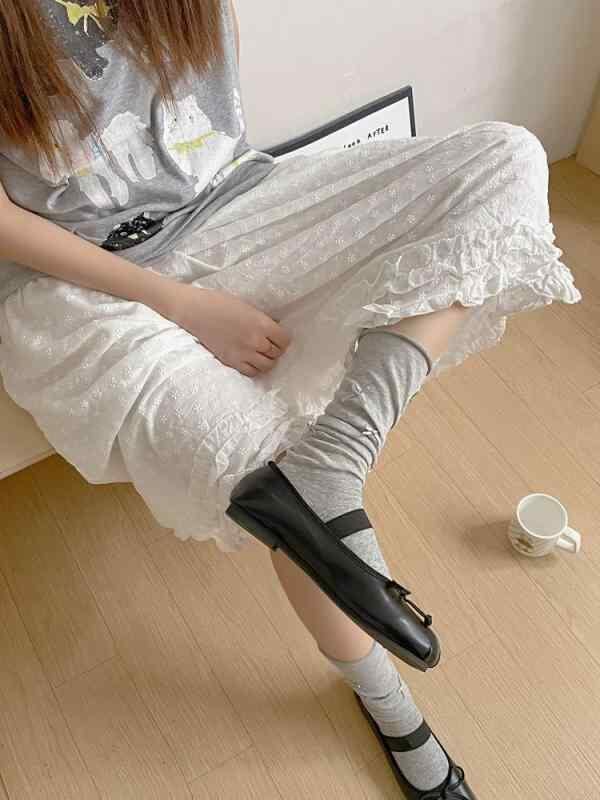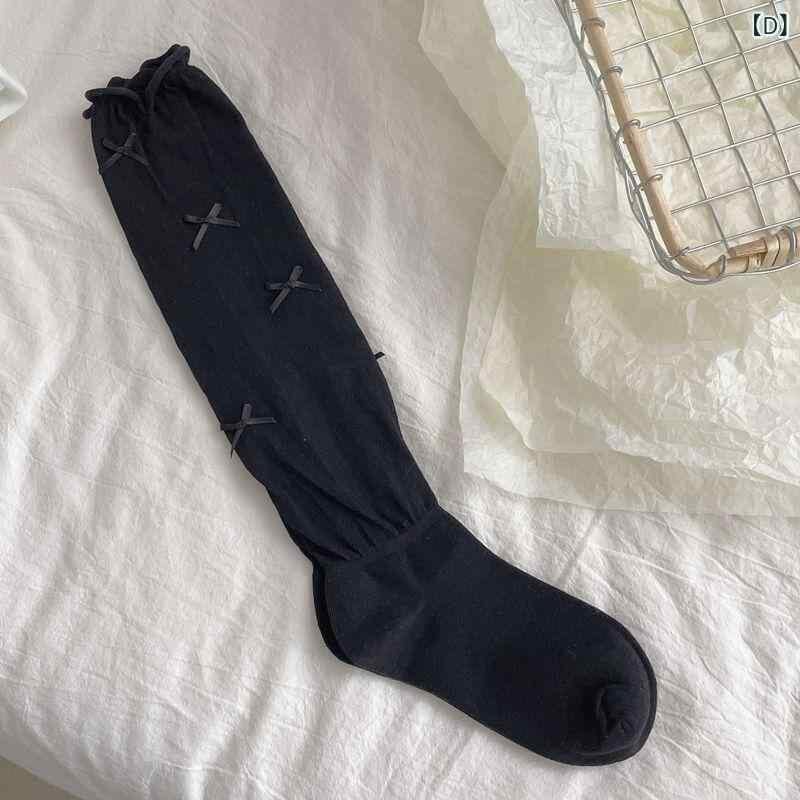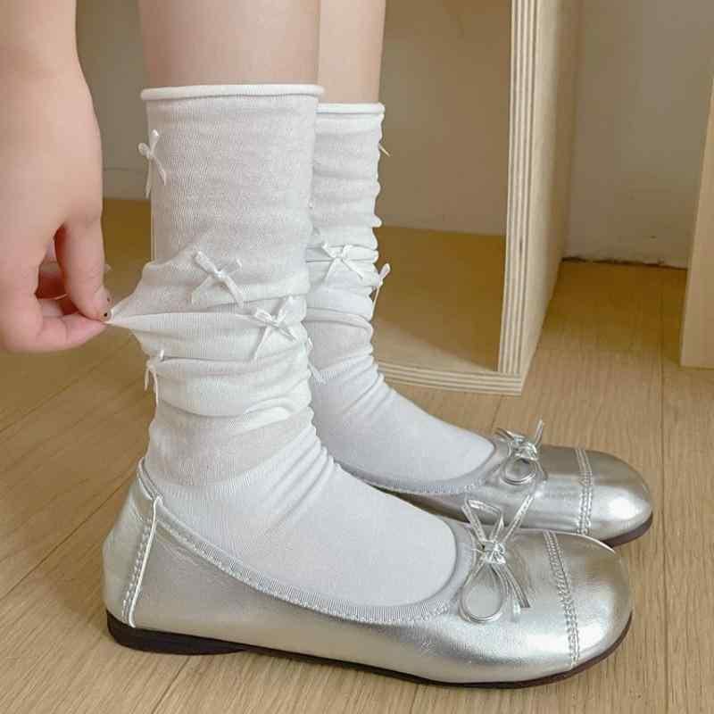 ソックス レディース JKスタイル バレエ風 ロリータスタイル ミドル丈 クルー丈 リボン フリル ルーズソックス くしゅくしゅ 薄手 夏用 綿 コットン 吸汗 シームレス 無縫製 ホワイト