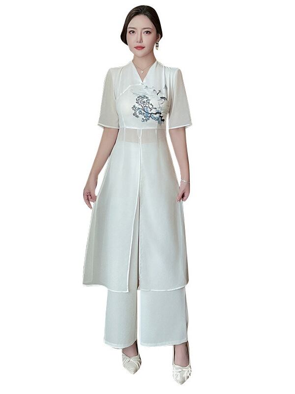 ユニフォーム レディース 美容師 エステサロン 養生館 足浴師 施術着 セットアップ 吸湿速乾 ニット Vネック 五分袖 ロングパンツ ホワイト エレガント 上品