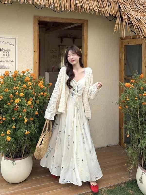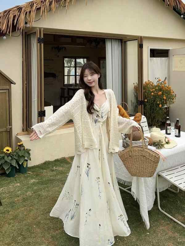 ワンピース レディース プラスサイズ フレンチスタイル レトロ 刺繍 キャミワンピース 洋ナシ体型カバー 着痩せ 細見え 無地 ロング丈 マキシ丈 Aライン ノースリーブ ハイウエスト プルオーバー