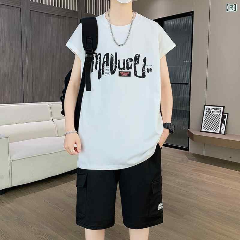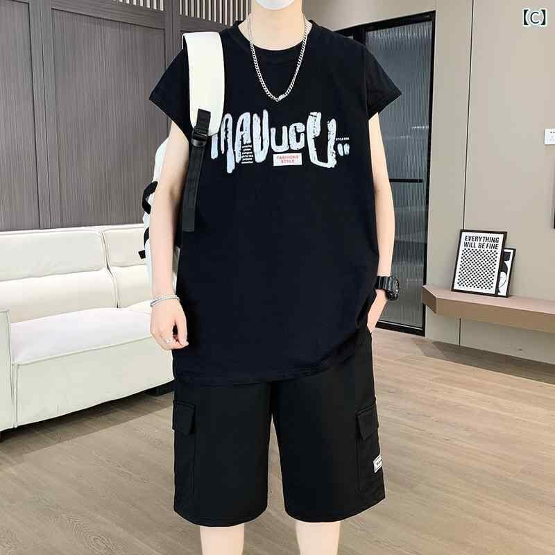 セットアップ メンズ 厚手 ノースリーブ タンクトップ ショートパンツ 夏用 クール カジュアル スポーツウェア 普段使い リラックスウェア 綿混 ストレッチ