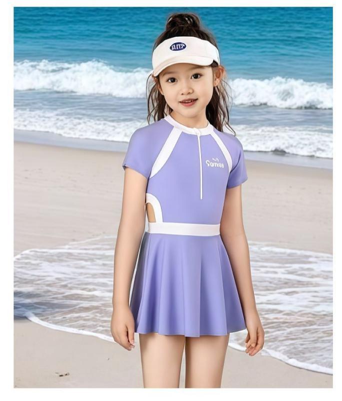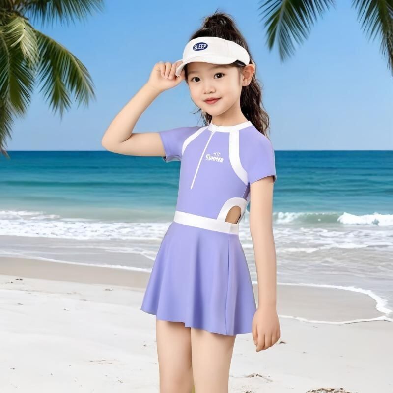 水着 女の子 ガールズ キッズ ジュニア 小学生 中学生 スイムウェア スイムスーツ 練習用 専門訓練 温泉 プール 海水浴 レジャー フィットネス用 ポリエステル 速乾性 軽量 伸縮性 かわいい カートゥーン柄 ブラック パープル 三角パンツタイプ