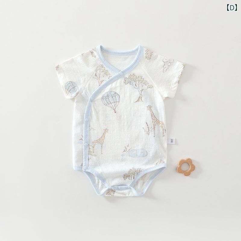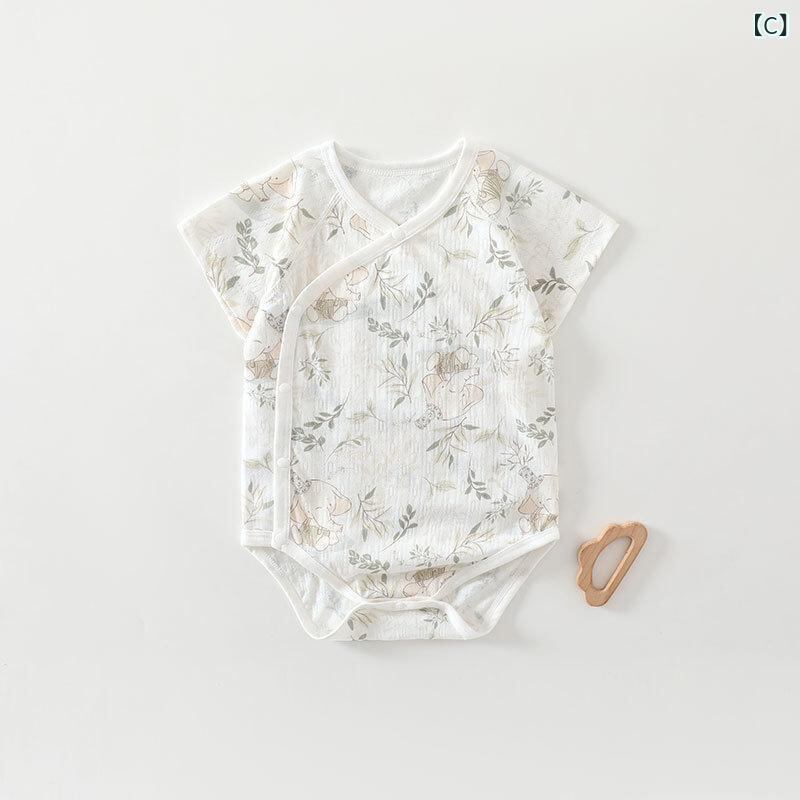 ロンパース ベビー 新生児 薄手 半袖 夏用 カバーオール ボディスーツ つなぎ 三角タイプ 縫い目なし 肌に優しい 前開き スナップボタン 男女兼用 通気性 吸湿速乾 普段使い お部屋着 パジャマ