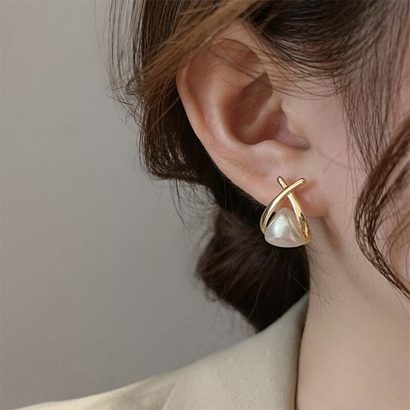 ピアス イヤリング レディース S925 シルバーポスト クロス パール ドロップ 上品 個性的デザイン 定番 高汎用性 金属製 メッキ加工 ゴールド 普段使い オフィス カジュアル フォーマル イヤーカフ