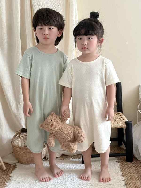 スリーパー 女の子 ベビー キッズ 綿100% 無地 薄手 涼しい 冷房対策 ルームウェア パジャマ 夏用 部屋着 コットン 天然素材 ソフトタッチ ピンク ブルー グリーン ベージュ イエロー